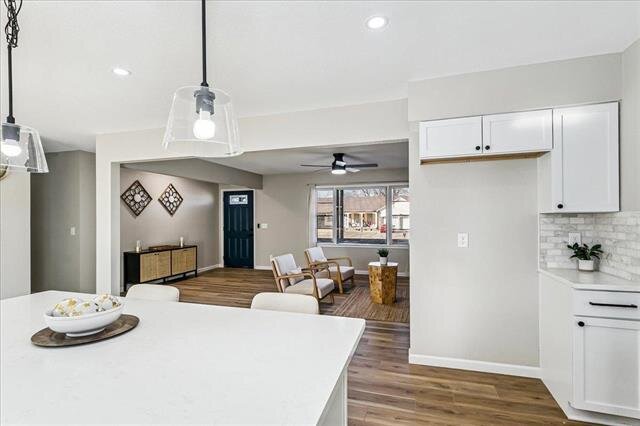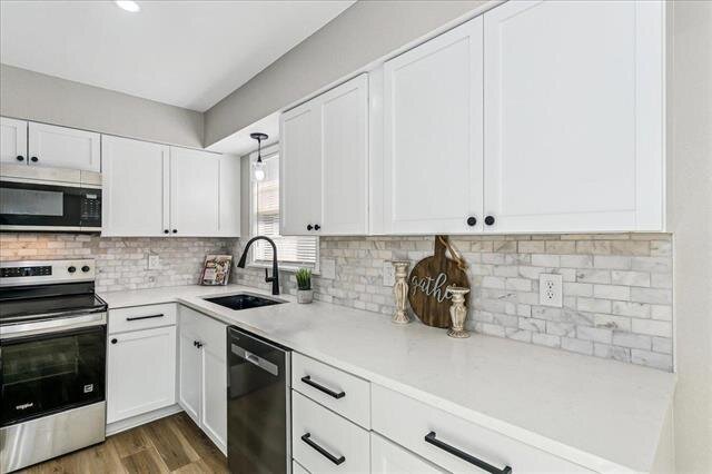 Welcome home to this beautifully renovated 3-bedroom, 2-bath gem that blends modern style with everyday comfort. From top to bottom, every detail has been thoughtfully updated. The show-stopping kitchen shines with stainless steel appliances, sleek quartz countertops, eye-catching tile backsplash, and brand-new cabinetry—perfect for both cooking and entertaining.