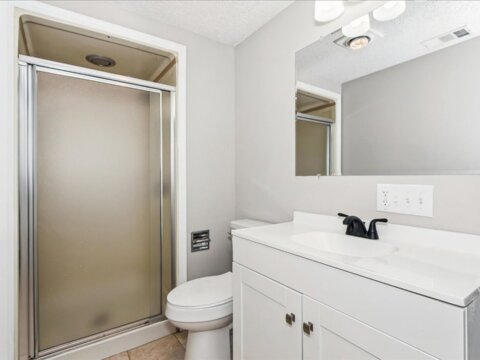 The main-level bedroom offers a serene retreat complete with a spacious walk-in closet, while two full bathrooms ensure comfort and convenience for family and guests alike.